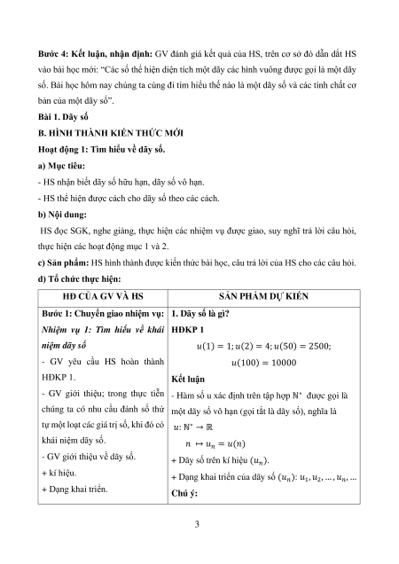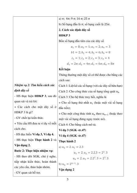 - HS thể hiện được cách cho dãy số theo các cách. b) Nội dung: