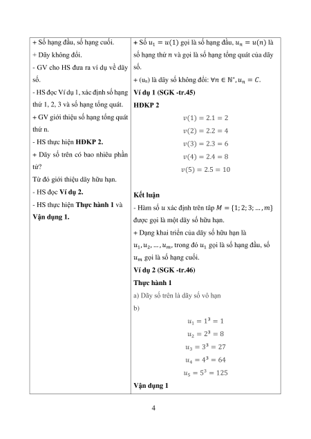 - HS nhận biết dãy số hữu hạn, dãy số vô hạn.