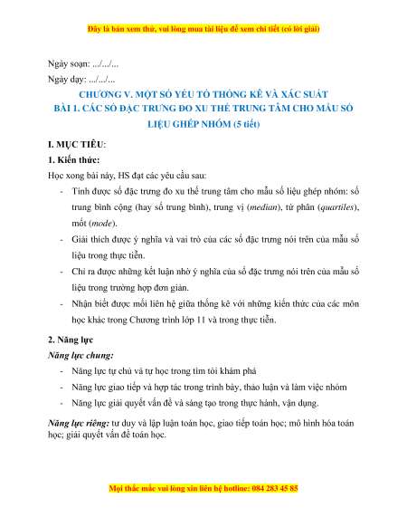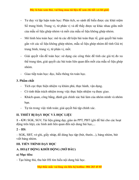 - Tính được số đặc trưng đo xu thế trung tâm cho mẫu số liệu ghép nhóm: số