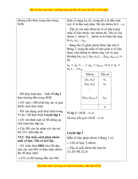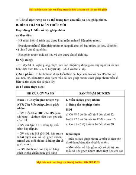 – Biết ghép nhóm mẫu số liệu và tìm được tần số tích lũy. b) Nội dung: