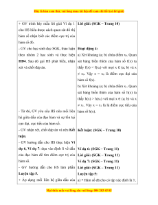 - Hiểu được đồ thị và bảng biến thiên, từ đó chỉ ra được các điểm cực trị, giá trị cực trị. 2. Năng lực Năng lực chung: