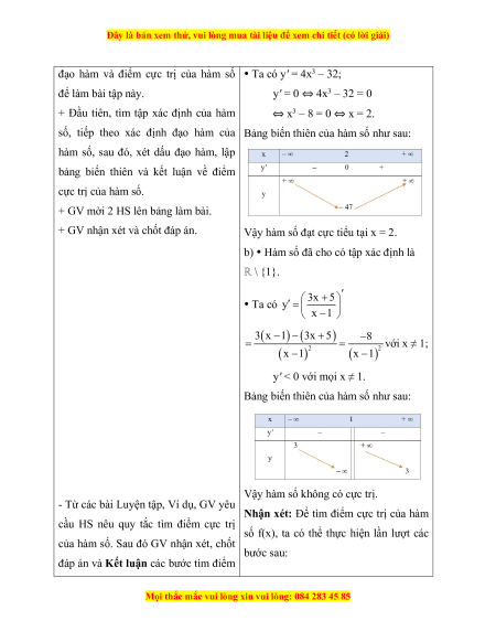- Nắm vững quy tắc tìm cực trị của hàm số. Bước đầu vận dụng vào giải các bài