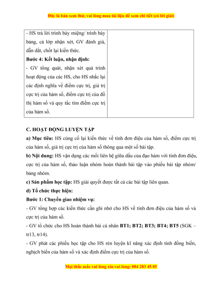 Bước 4: Kết luận, nhận định: GV ghi nhận câu trả lời của HS, trên cơ sở đó dẫn