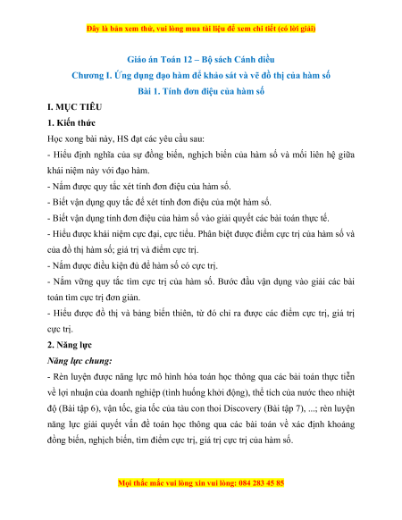 Bài 1. Tính đơn điệu của hàm số I. MỤC TIÊU 1. Kiến thức