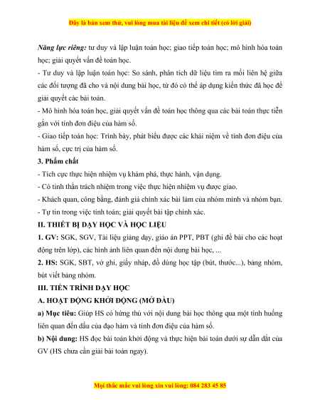 - Giao tiếp toán học: Trình bày, phát biểu được các khái niệm về tính đơn điệu của
