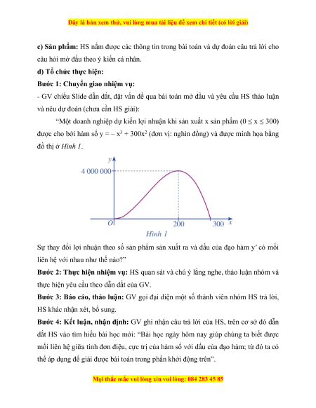 được cho bởi hàm số y = – x3 + 300x2 (đơn vị: nghìn đồng) và được minh họa bằng