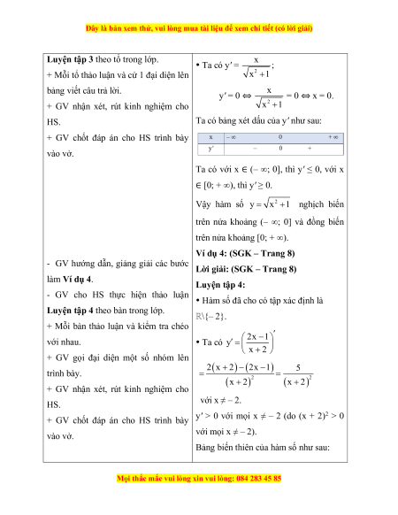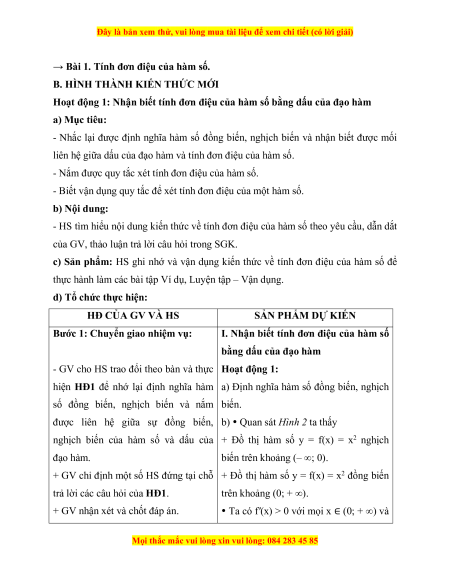 - HS tìm hiểu nội dung kiến thức về tính đơn điệu của hàm số theo yêu cầu, dẫn dắt