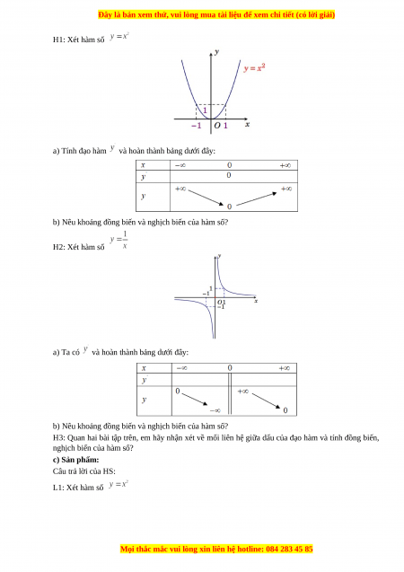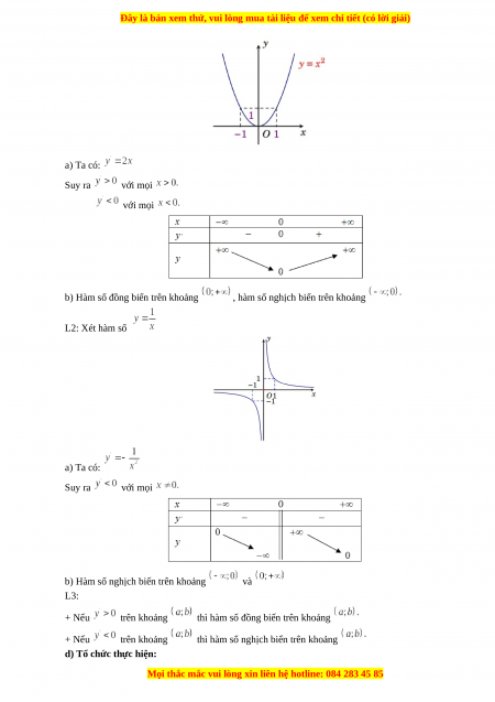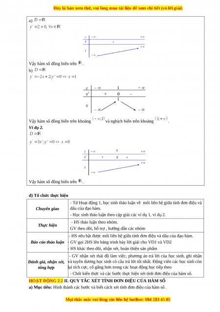 a) Mục tiêu: Nắm được mối liên hệ giữa dấu của đạo hàm và tính đơn điệu, lập được bảng biến
