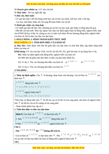 - Chốt kiến thức và các bước thực hiện xét tính đơn điệu của hàm số.