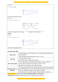- Giúp HS bước đầu thấy được mối liên hệ giữa tính đơn điệu và dấu của đạo hàm.