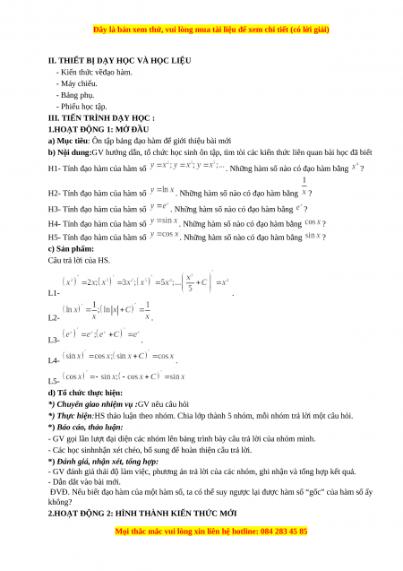 - GV đặt vấn đề cho HS thực hiện hoạt động 1 SGK từ đó rút ra định nghĩa nguyên hàm. Chuyển giao
