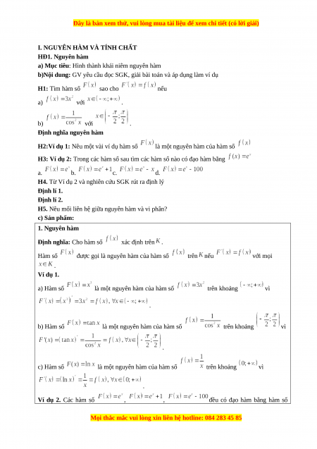 I. NGUYÊN HÀM VÀ TÍNH CHẤT