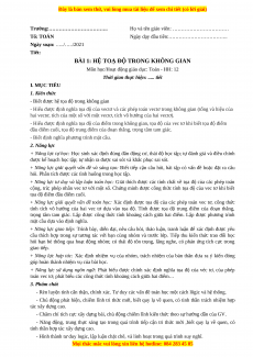 - Hiểu được định nghĩa tọa độ của điểm trong không gian, tọa độ của vec tơ khi biết tọa độ điểm