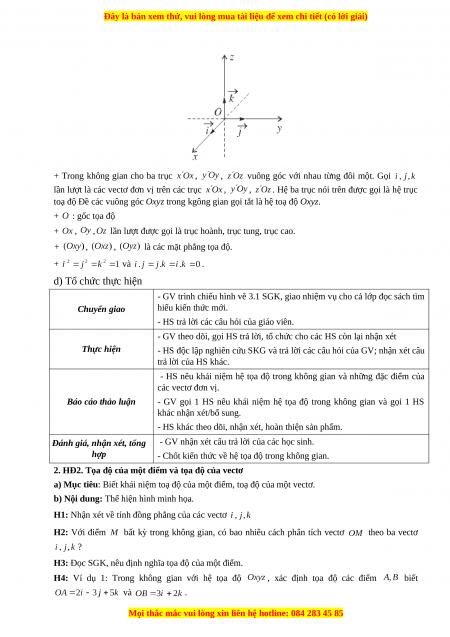 H2: Nêu đặc điểm của các vectơ . c) Sản phẩm: 1. Hệ tọa độ