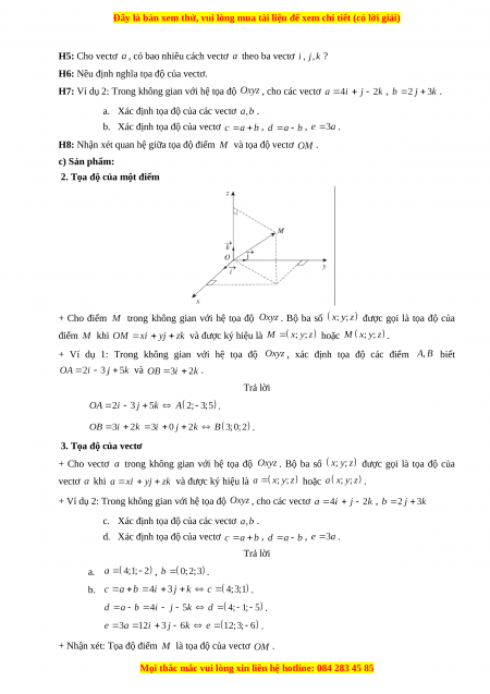 H7: Ví dụ 2: Trong không gian với hệ tọa độ , cho các vectơ , .
