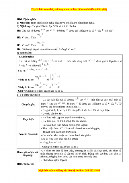 - Chốt định nghĩa lôgarit. HĐ2. Tính chất