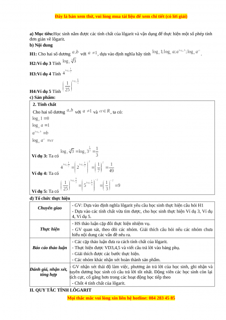 a) Mục tiêu:Học sinh nắm được các tính chất của lôgarit và vận dụng để thực hiện một số phép tính đơn giản về lôgarit. b) Nội dung