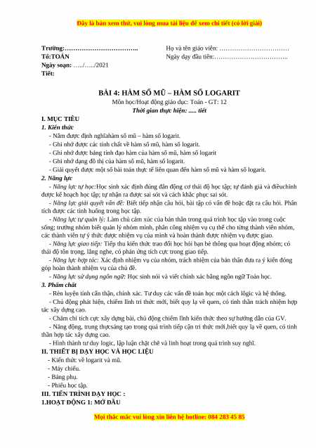 - Kiến thức về logarit và mũ. - Máy chiếu. - Bảng phụ. - Phiếu học tập.