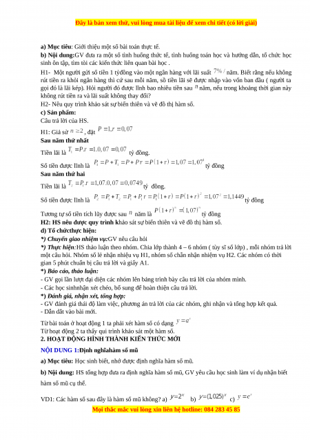 NỘI DUNG 3: Khảo sát hàm số mũ