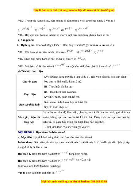 VD3: Hãy cho một hàm số là hàm số mũ và một hàm số không phải là hàm số mũ? c) Sản phẩm: