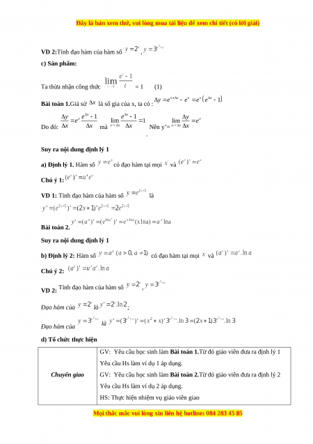 NỘI DUNG 2: Đạo hàm của hàm số mũ