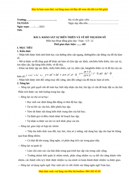 BÀI 5: KHẢO SÁT SỰ BIẾN THIÊN VÀ VẼ ĐỒ THỊ HÀM SỐ