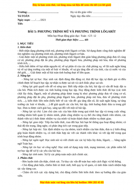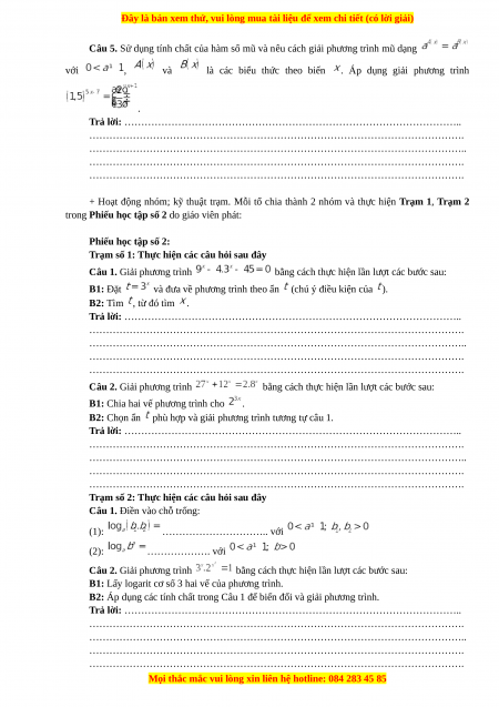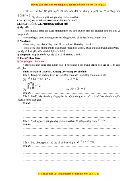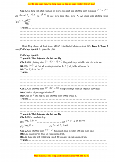 - Học sinh giải được phương trình mũ bằng phương pháp đặt ẩn phụ, logarit hóa. b) Nội dung: