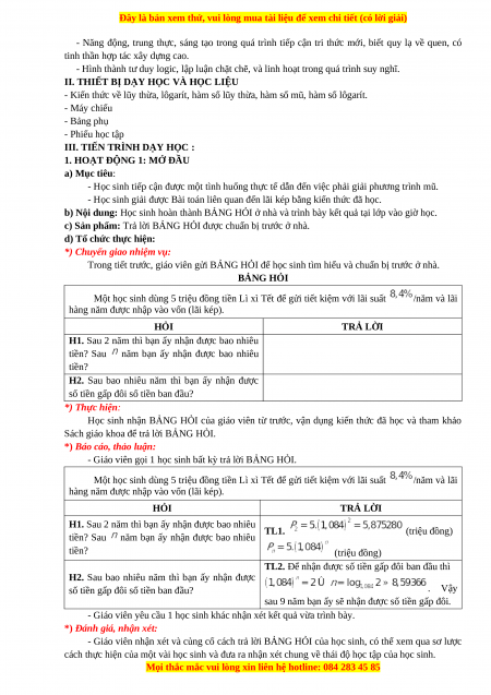 - Học sinh giải được Bài toán liên quan đến lãi kép bằng kiến thức đã học.