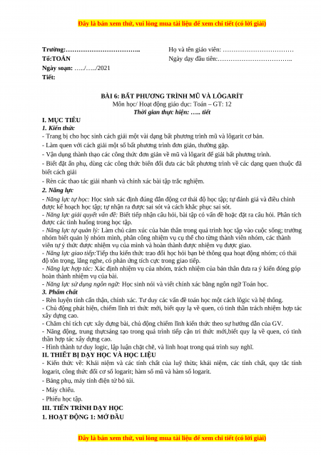 BÀI 6: BẤT PHƯƠNG TRÌNH MŨ VÀ LÔGARÍT