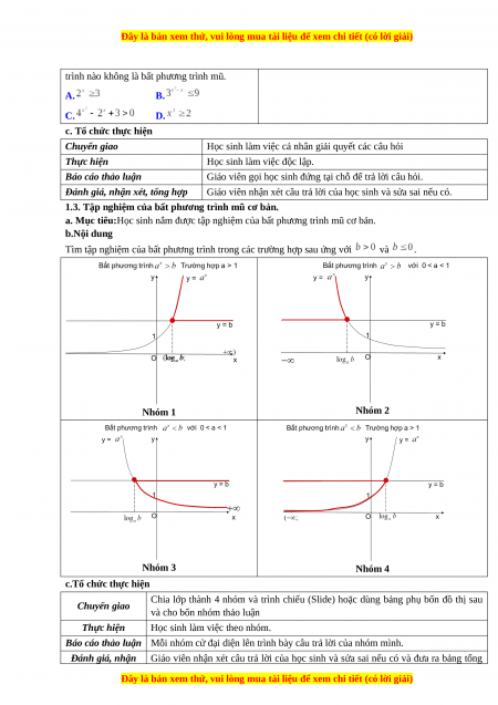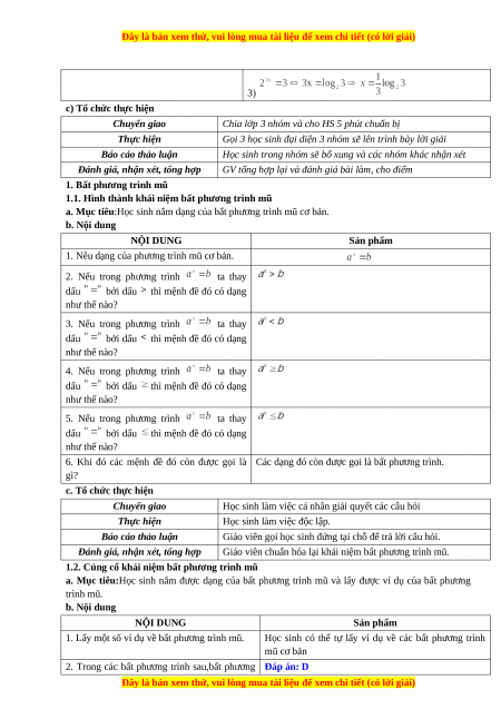 Học sinh ôn tập lại cách giải phương trình mũ, từ đó áp dụng các phép biến đổi để giải bất phương trình mũ. b) Nội dung NỘI DUNG SẢN PHẨM