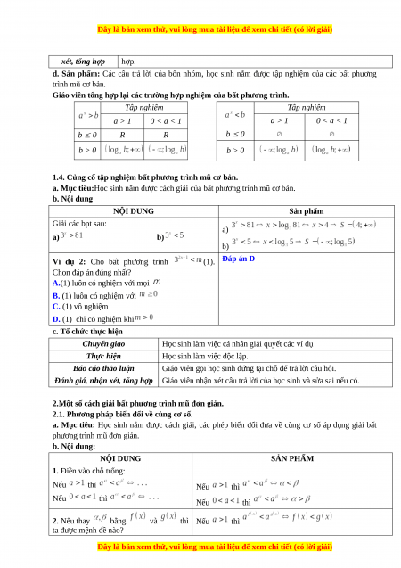 a. Mục tiêu:Học sinh nắm dạng của bất phương trình mũ cơ bản. b. Nội dung NỘI DUNG Sản phẩm