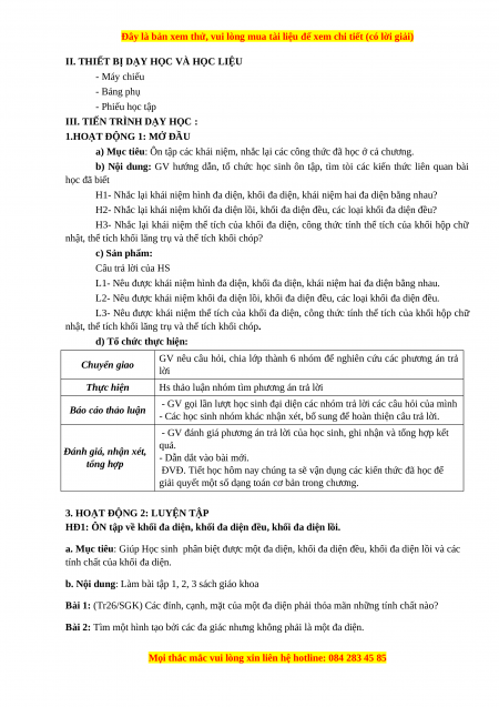 L1- Nêu được khái niệm hình đa diện, khối đa diện, khái niệm hai đa diện bằng nhau.