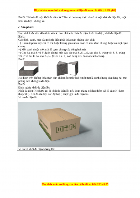 - Hs nêu định nghĩa khối đa diện lồi, nêu ví dụ thực tế về khối đa diện lồi,