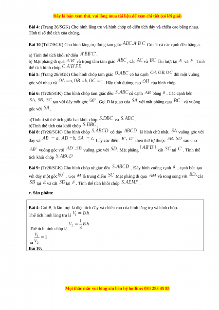 nhật, thể tích khối lăng trụ và thể tích khối chóp.