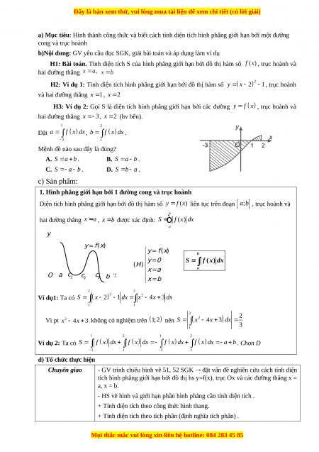 H1: Bài toán. Tính diện tích S của hình phẳng giới hạn bởi đồ thị hàm số , trục hoành và hai đường thẳng