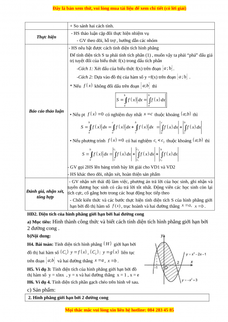 Báo cáo thảo luận - Các cặp thảo luận đưa ra cách tính diện tích hình phẳng giới hạn bởi 2