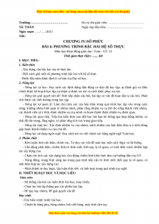 âm vào bài tập. Giải được phương trình bậc hai với hệ số thực, đồng thời vận dụng giải các phương