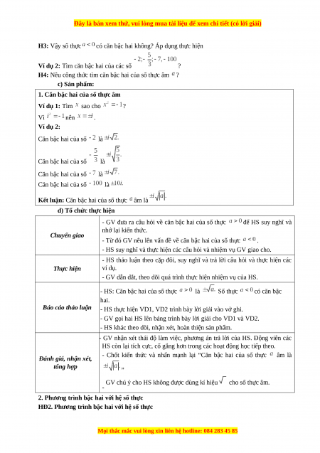 H4: Nêu công thức tìm căn bậc hai của số thực âm ? c) Sản phẩm: