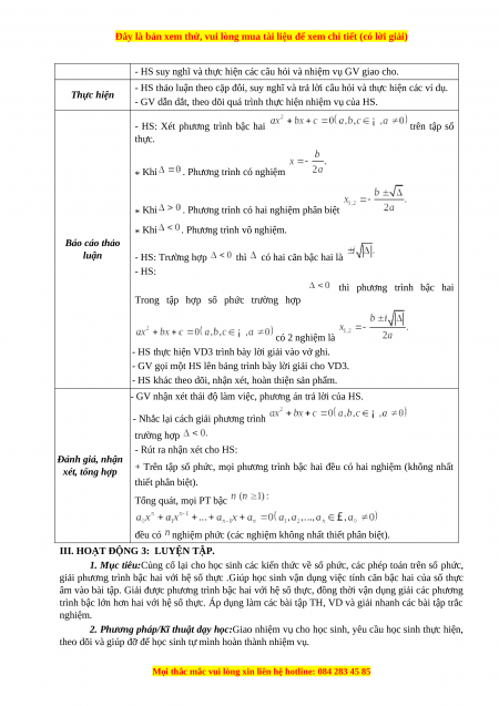 giải phương trình bậc hai với hệ số thực .Giúp học sinh vận dụng việc tính căn bậc hai của số thực