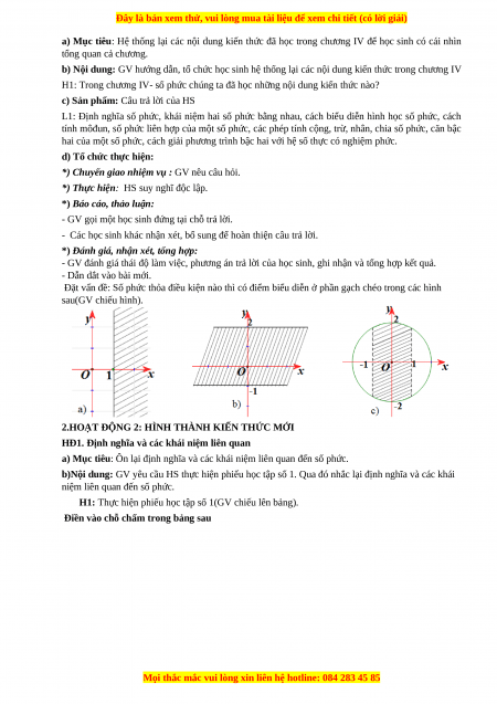 - HS nhắc lại được định nghĩa số phức và các khái niệm về mô đun, số