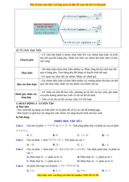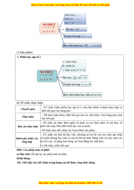 - HS nhắc lại được các phép toán số phức