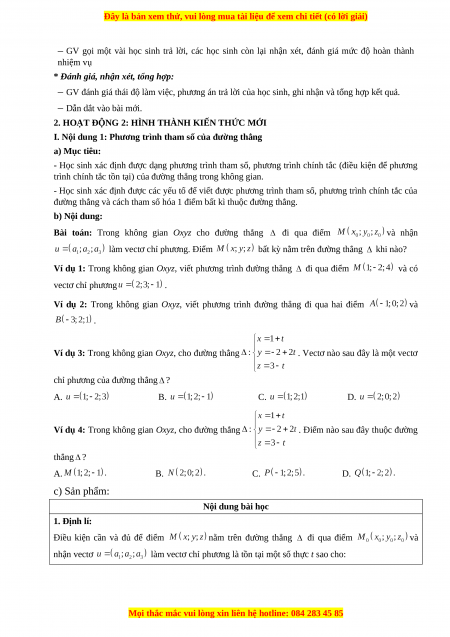 I. Nội dung 1: Phương trình tham số của đường thẳng a) Mục tiêu: