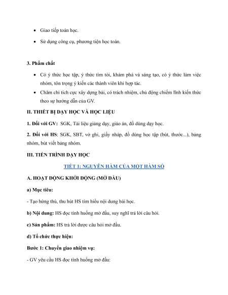 - Vận dụng được khái niệm nguyên hàm vào giải quyết một số bài toán từ thực tiễn. 2. Năng lực