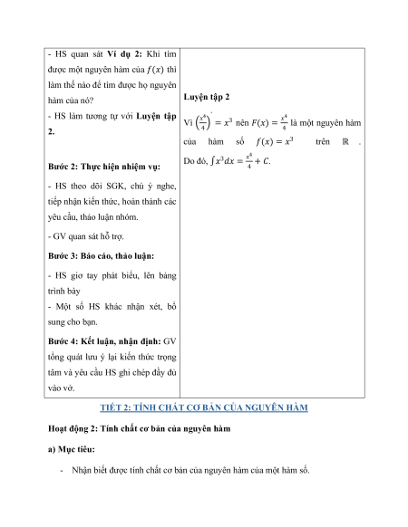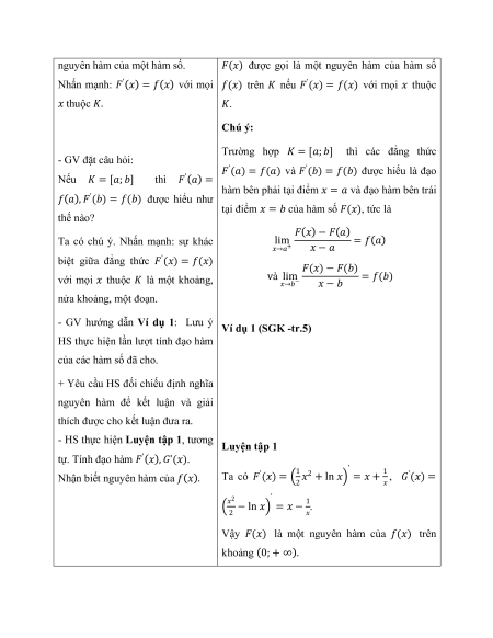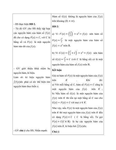- Nhận biết được khái niệm nguyên hàm của một hàm số. b) Nội dung: