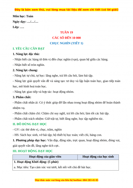 Ngày dạy: …/…/… Lớp: …. TUẦN 19 CÁC SỐ ĐẾN 10 000