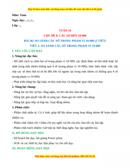 BÀI 46: SO SÁNH CÁC SỐ TRONG PHẠM VI 10 000 (2 TIẾT)