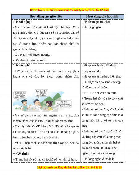 - GV sử dụng các mô hình nghìn, trăm, chục, đơn số thì so sánh từng cặp chữ số ở