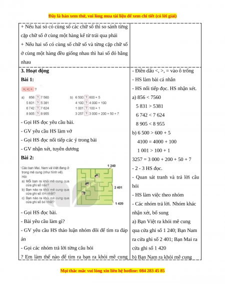 Giáo án Toán 3 Kết nối tri thức Tuần 19: So sánh các số trong phạm vi 10 000