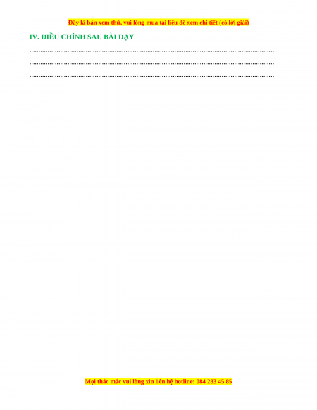 IV. ĐIỀU CHỈNH SAU BÀI DẠY