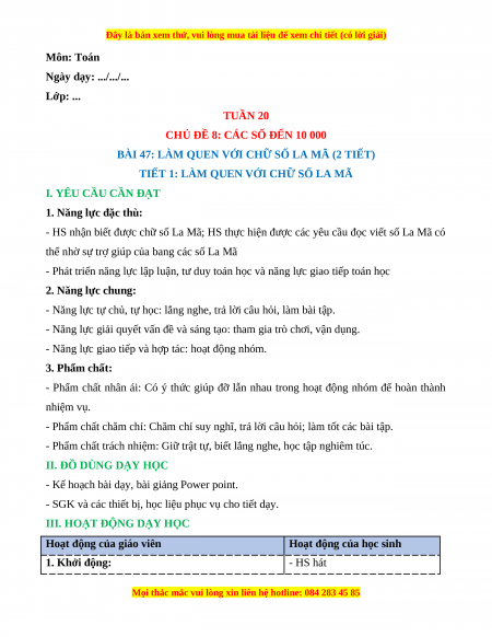 BÀI 47: LÀM QUEN VỚI CHỮ SỐ LA MÃ (2 TIẾT)